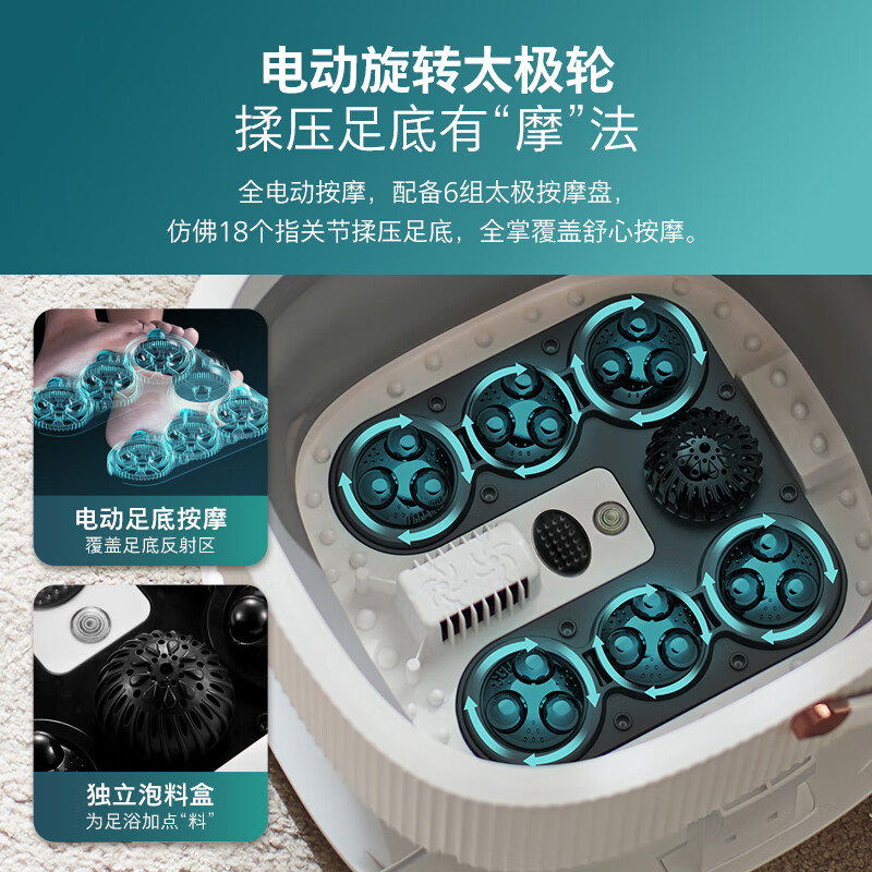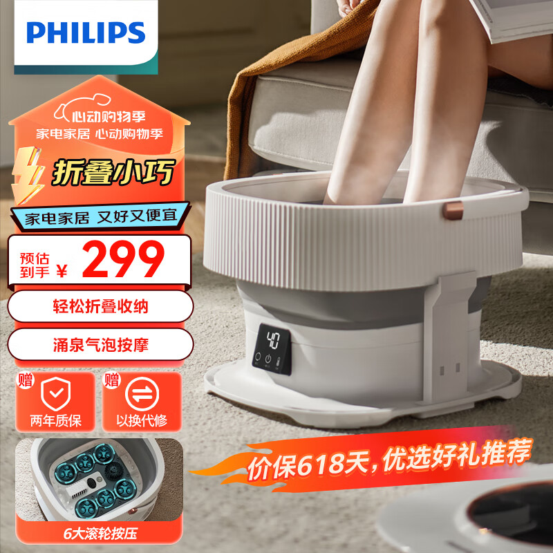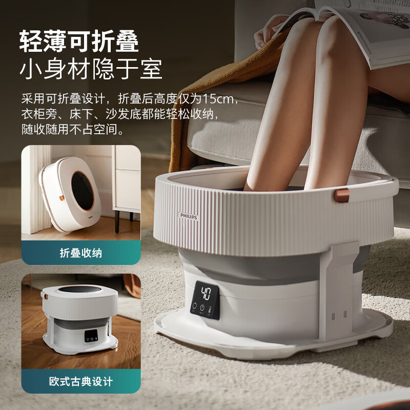 飞利浦(PHILIPS)泡脚桶可折叠足浴盆加热按摩洗脚盆 加长按摩轮智能控温足疗盆家用送父母男女友节日礼物3111F白色价格:598.00元!