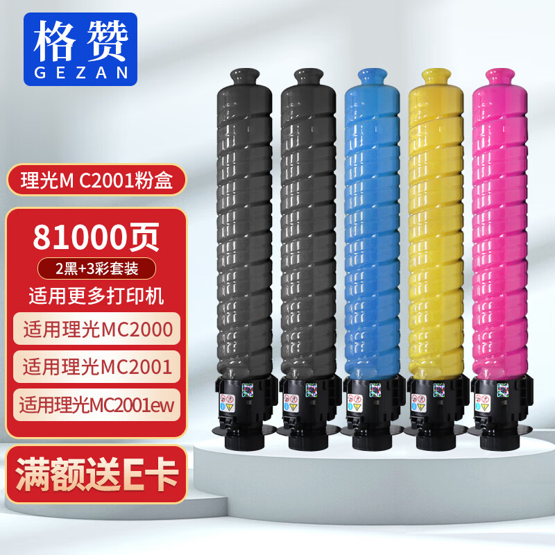 格赞M C2001粉盒 适用理光MC2000粉盒 Ricoh MC2001粉盒M C2000ew复印机碳粉墨盒墨粉硒鼓 2黑+3彩套装大容量价格:668.00元!