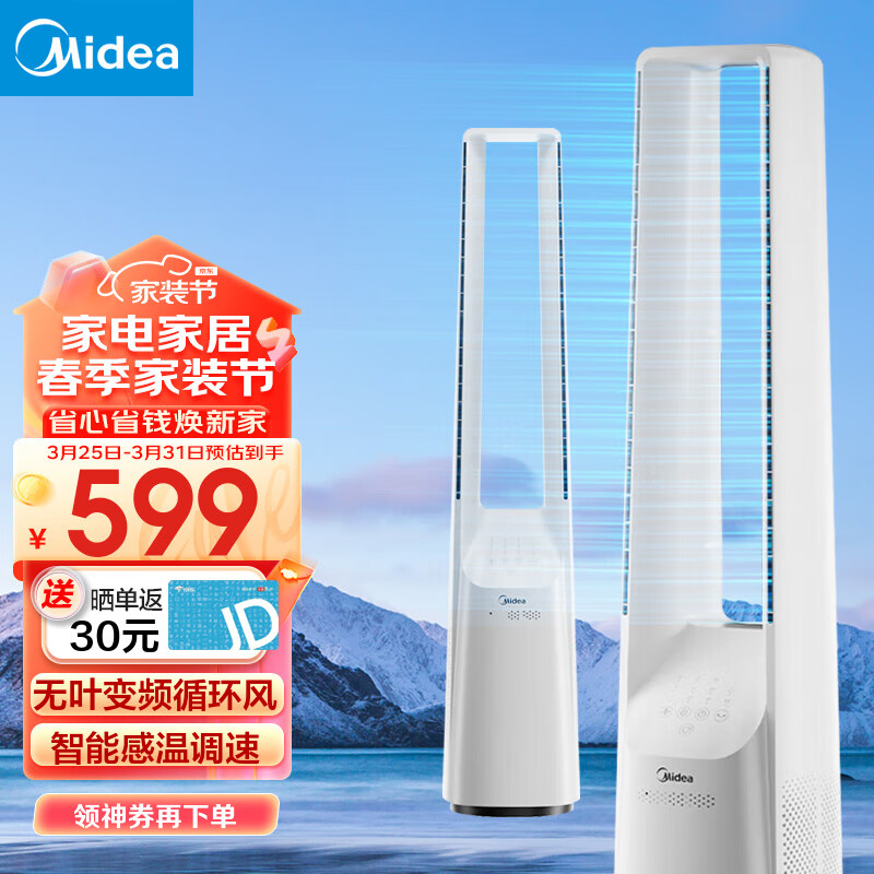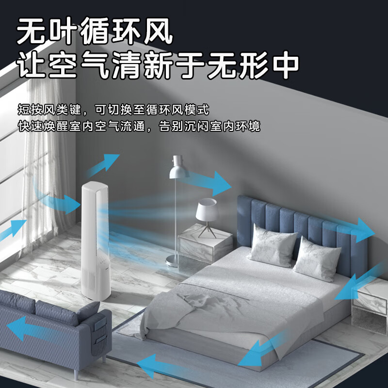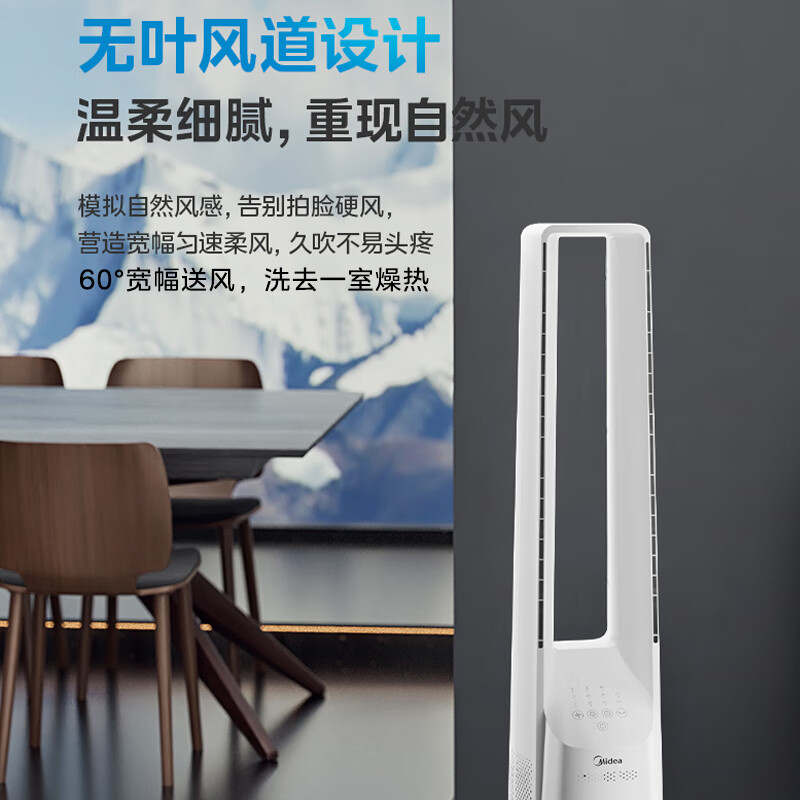 美的(Midea)电风扇家用塔扇无叶风扇落地扇智能定时轻音安静宿舍遥控循环风随温变大风力 【无叶循环风】AMS150H-TB价格:699.00元!