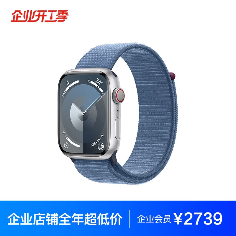 Apple Watch Series?9 (GPS);45?毫米银色铝金属表壳;凛蓝色回环式运动表带 MR9F3CH/A*企业专享价格:3199.00元!