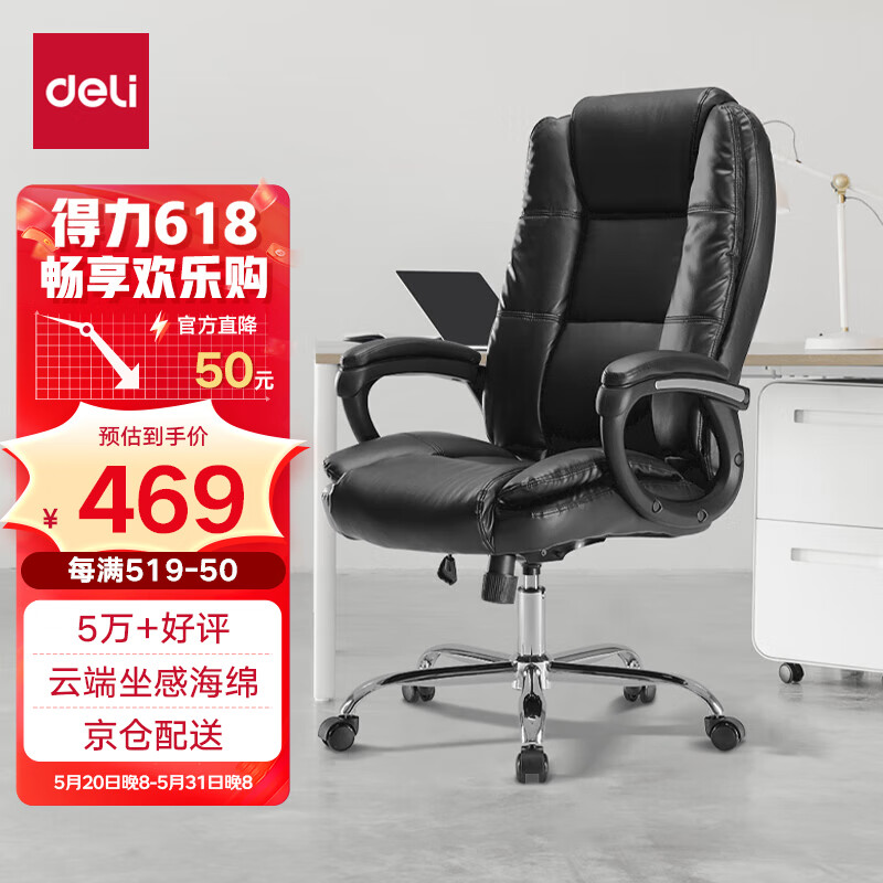 得力(deli)4913 家用办公椅 转椅人体工学皮椅 时尚升降座椅 老板椅价格:519.00元!