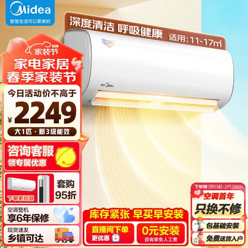 美的(Midea)空调大1匹挂机 冷静星二代 新三级能效 变频冷暖 壁挂式 KFR-26GW/BDN8Y-PH400(3)A 卧室书房空调价格:2249.00元!