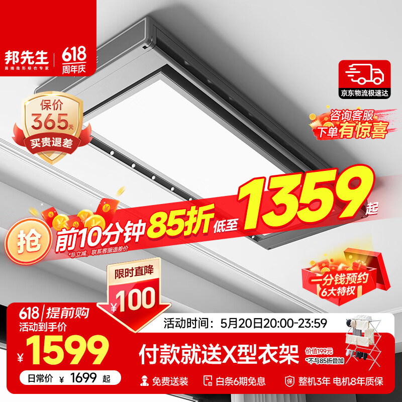 邦先生电动晾衣架智能阳台全自动升降超薄隐形伸缩嵌入式凉晒衣杆机M33A价格:1999.00元!