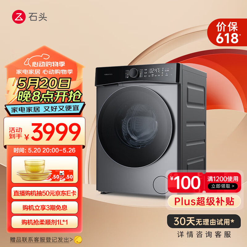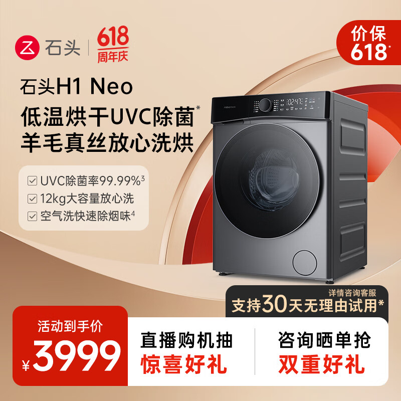 石头分子筛洗烘一体机H1 Neo 家用12kg公斤大容量滚筒洗衣机洗烘一体洗衣机全自动智能投放空气洗 太空灰 洗烘一体机价格:3999.00元!