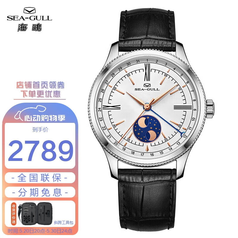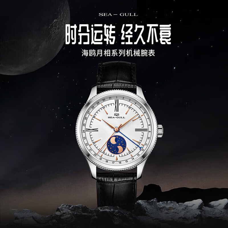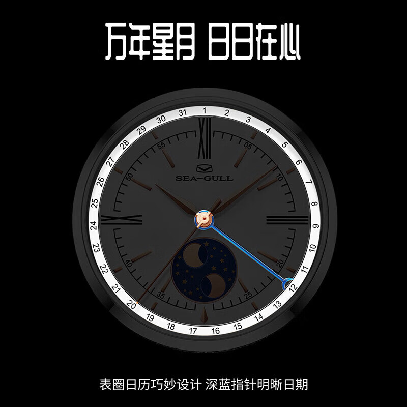 海鸥(SEAGULL)手表男士自动机械表 男表送男友礼物 日历月相腕表 819.17.6170价格:2989.00元!