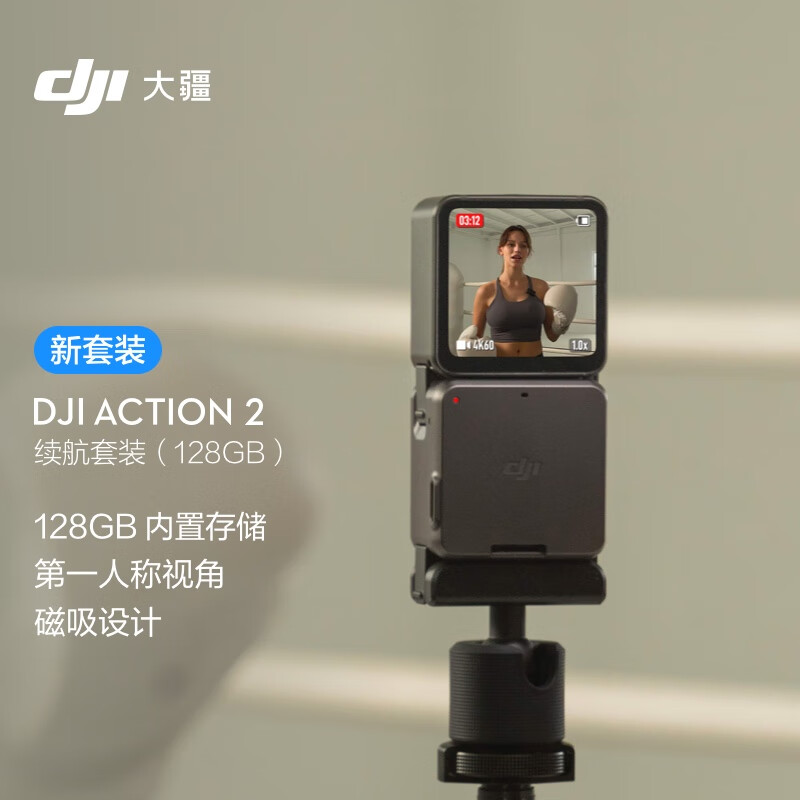 大疆DJI Action 2 续航套装(128GB) 灵眸运动相机 小型便携式手持防水防抖vlog相机 +随心换2年价格:2048.00元!