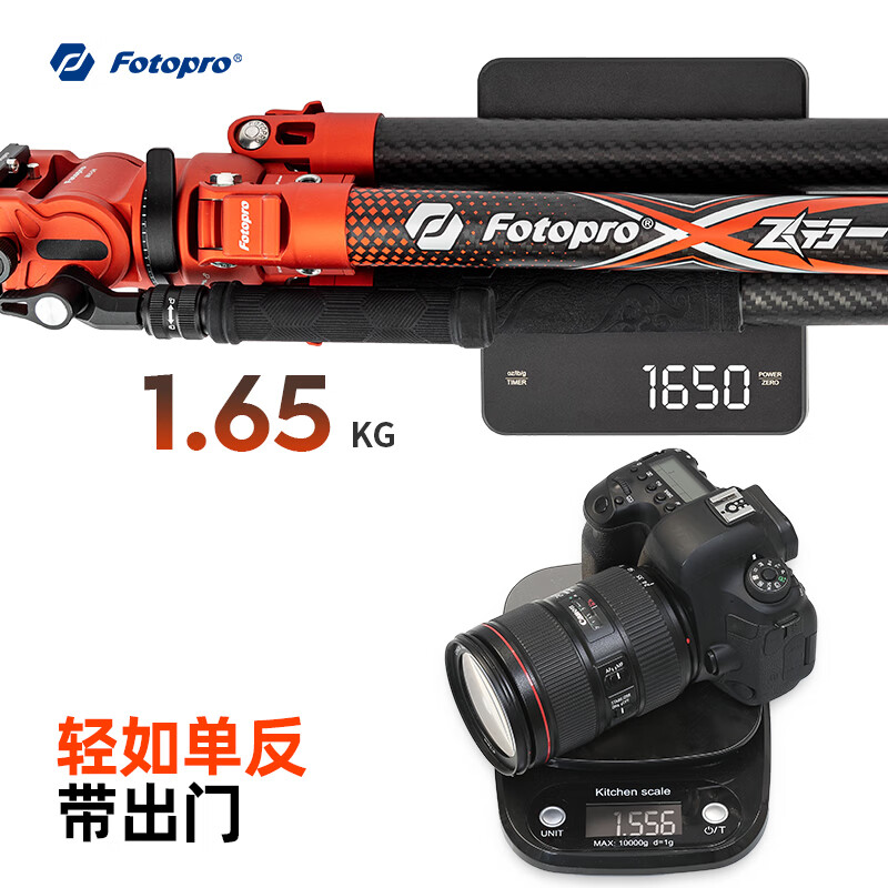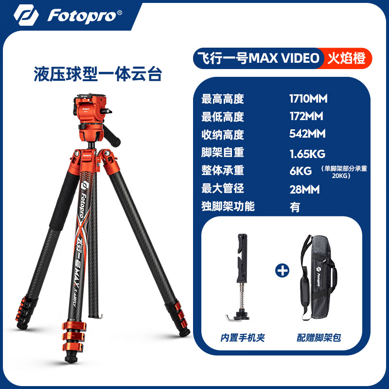 富图宝(Fotopro)飞行一号Max Video碳纤维扳扣设计大管径相机微单摄影摄像视频拍摄液压云台专业相机三脚架 火焰橙价格:1646.00元!