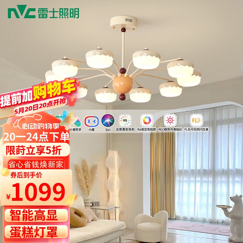 雷士(NVC)奶油法式浪漫蛋糕灯罩客厅灯智能舒适光10头吊灯WHDD110F/G-03价格:2598.00元!
