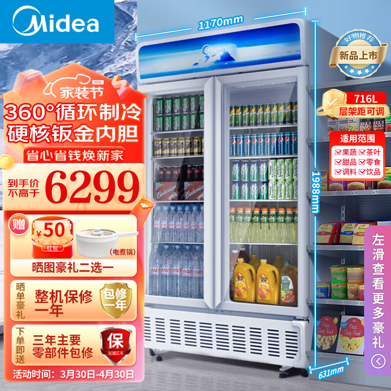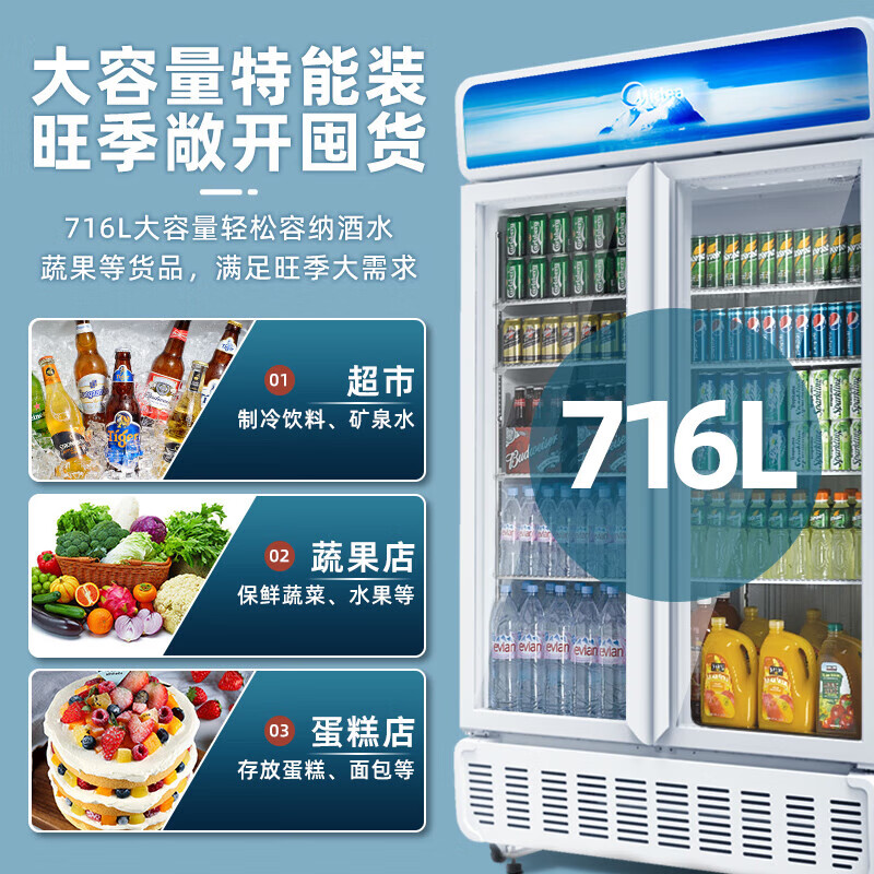 美的(Midea)展示柜商用 716L立式饮料陈列柜冰柜冷藏展示柜 商超便利店鲜花蛋糕啤酒柜 SC-716GM(Q)价格:6399.00元!