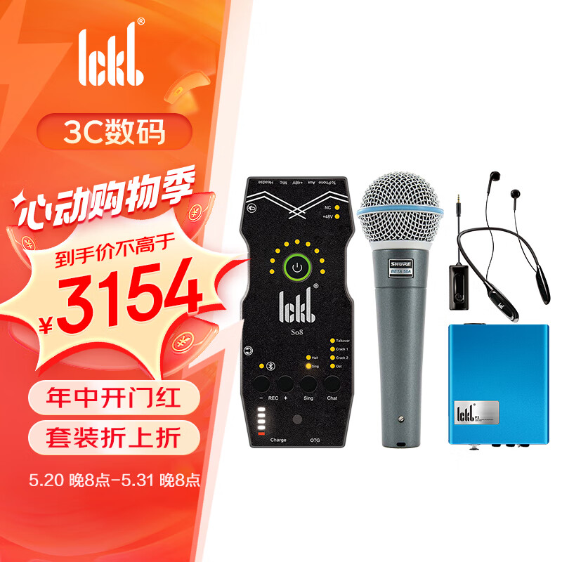 Ickb so8第五代声卡+舒尔BETA58A麦克风话放套装手机电脑抖音主播唱歌录音直播设备全套电容快手话筒价格:3320.00元!