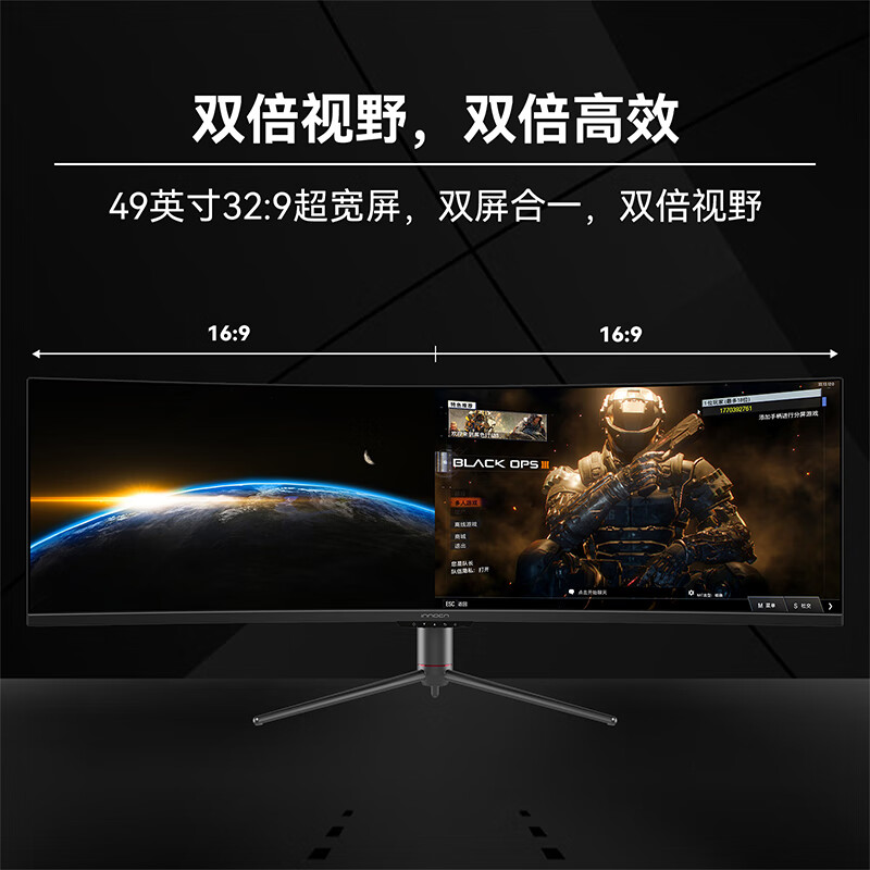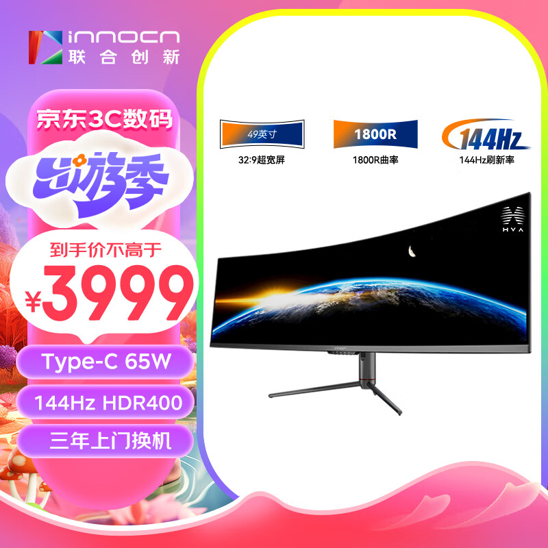 联合创新(Innocn)49英寸144Hz曲面屏HVA带鱼屏HDR400 Type-C65W RJ45网口 出厂校色 游戏电竞显示器49C1G价格:3999.00元!