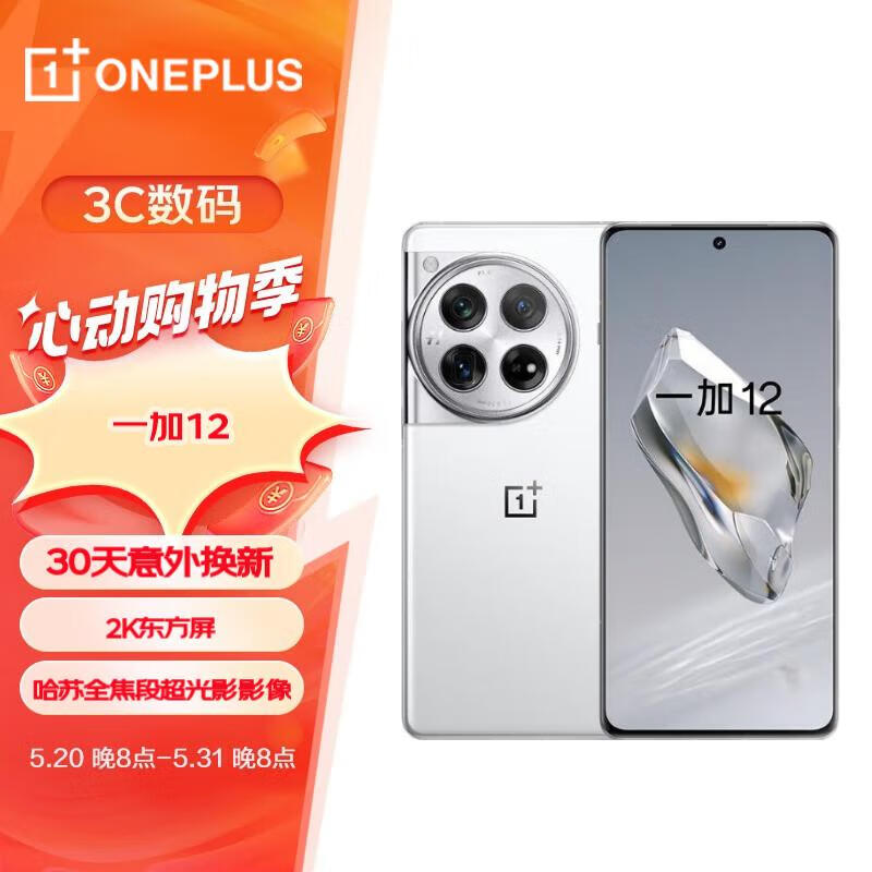 一加手机 一加12 12GB+256GB 留白 哈苏全焦段超光影影像 第三代高通骁龙8旗舰芯片 OPPO AI 5G手机价格:4299.00元!