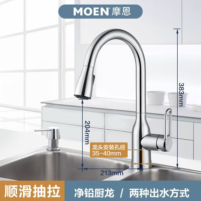 摩恩(MOEN)厨房水龙头 抽拉式洗菜盆洗碗盆水槽冷热水龙头 高抛净铅龙头价格:1049.00元!