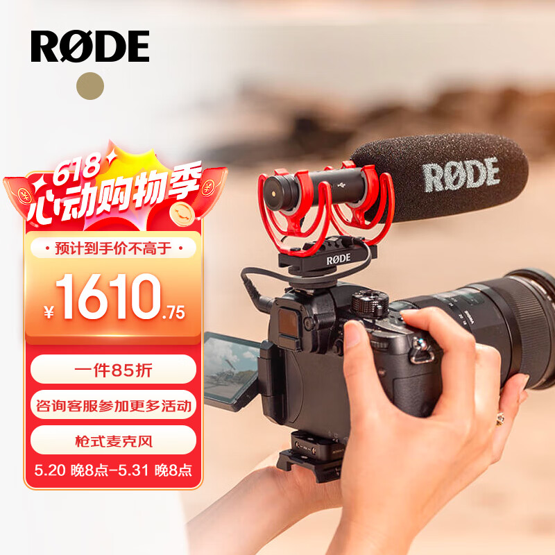 RODE 罗德 VideoMic NTG 枪式麦克风直播录音采访VLOG相机手机专业指向性收音话筒(官方标配)价格:1895.00元!