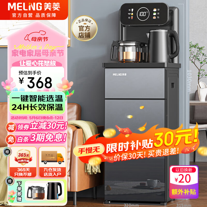 美菱(MeiLing)茶吧机家用高端客厅多功能智能遥控立式下置式饮水机全新升级【玻璃彩屏】制冷款MY-C565-B价格:398.00元!