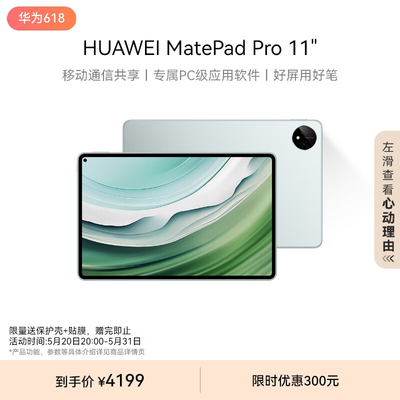 HUAWEI MatePad Pro 11英寸2024华为平板电脑2.5K屏卫星通信星闪技术办公学习12+512GB WIFI 雅川青价格:4199.00元!