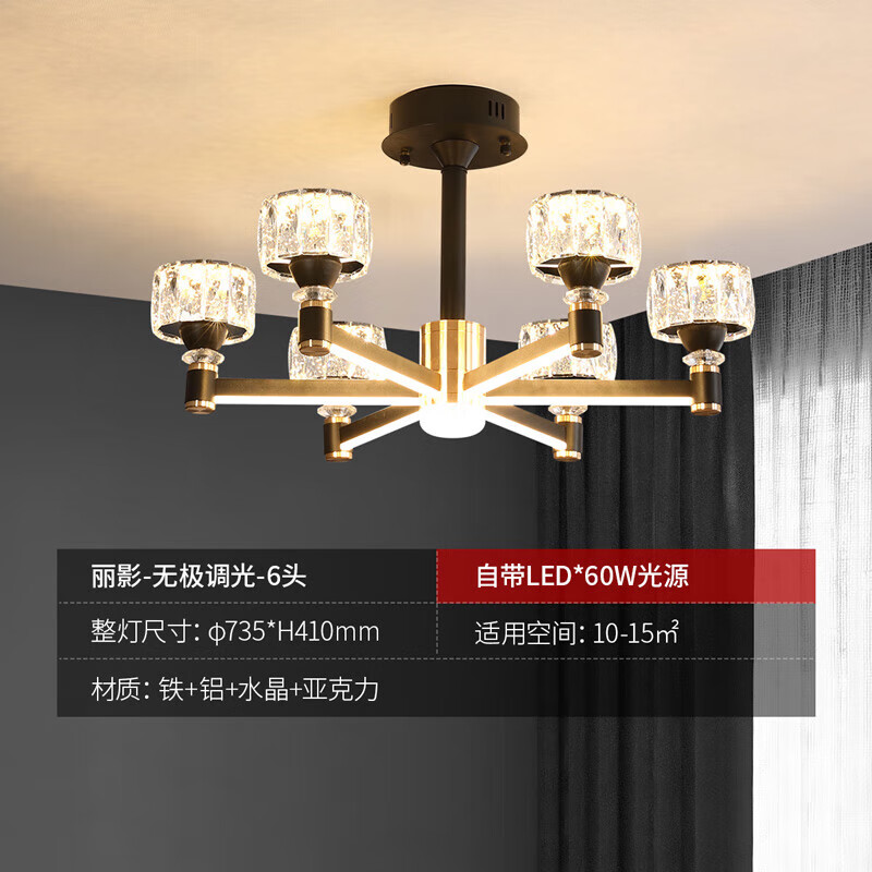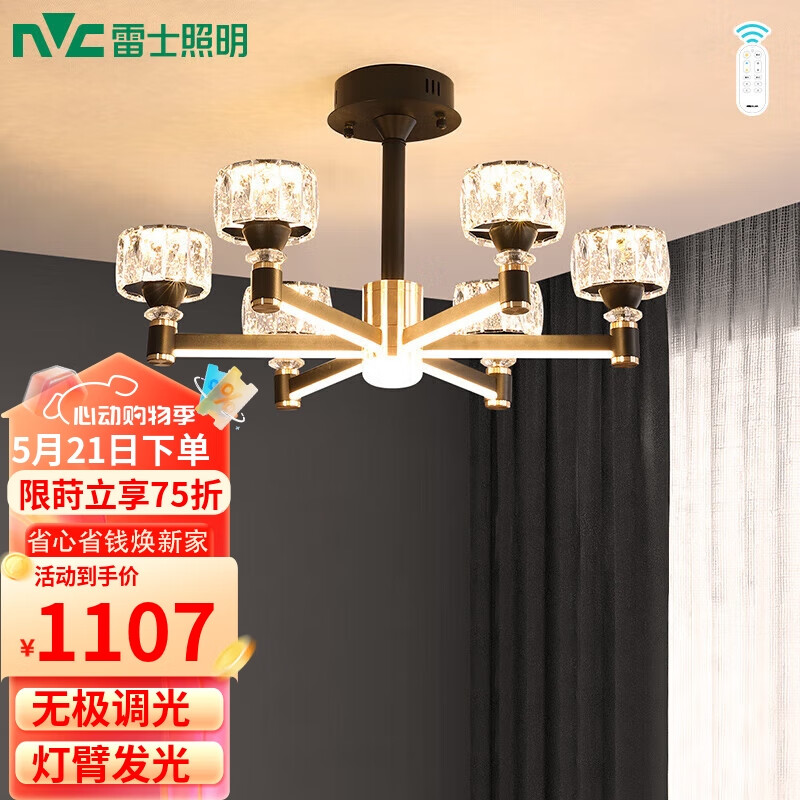 雷士(NVC)美式轻奢现代客厅灯灯臂发光具吊灯无极调光6头灯饰WHDD60F/G-02价格:1609.00元!