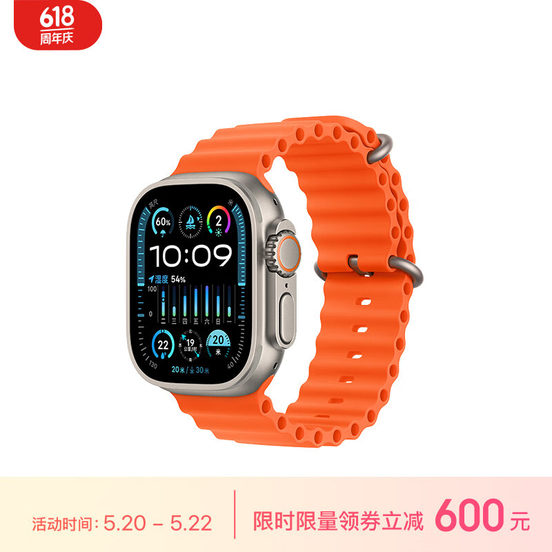 Apple/苹果 Watch Ultra2 智能手表 GPS+蜂窝款 49毫米 钛金属表壳橙色海洋表带 健康手表 MRF83CH/A价格:6499.00元!