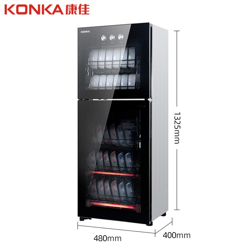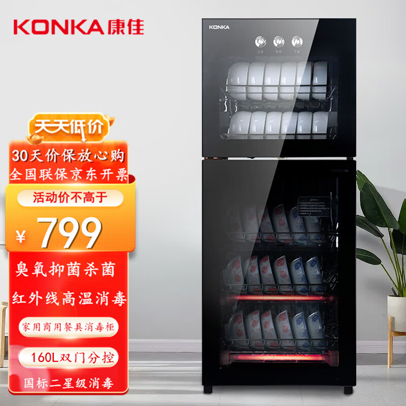 康佳(KONKA)商用消毒柜家用消毒碗柜立式臭氧杀菌红外线高温消毒大容量160L双门ZTP328K26价格:859.00元!
