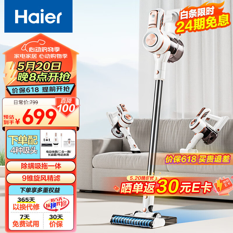 海尔(haier)吸尘器家用手持无线 G16SPRO白色吸尘拖地一体机超高速电机大吸力续航升级 配除螨吸头价格:699.00元!
