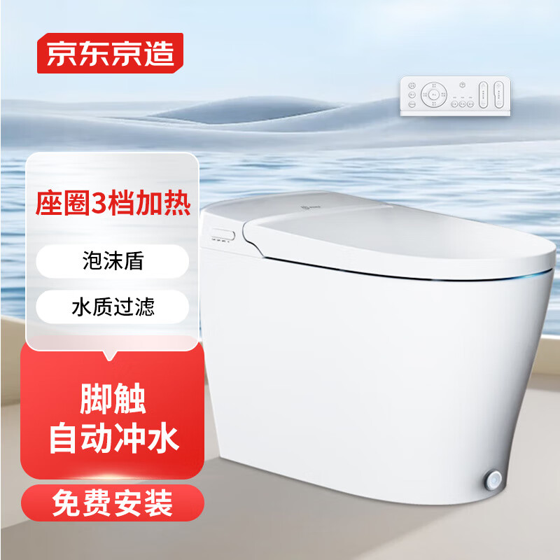 京东京造大白鲸智能马桶一体机2.0 坐便器感应冲水? 泡沫盾 进水过滤清洗价格:1799.00元!