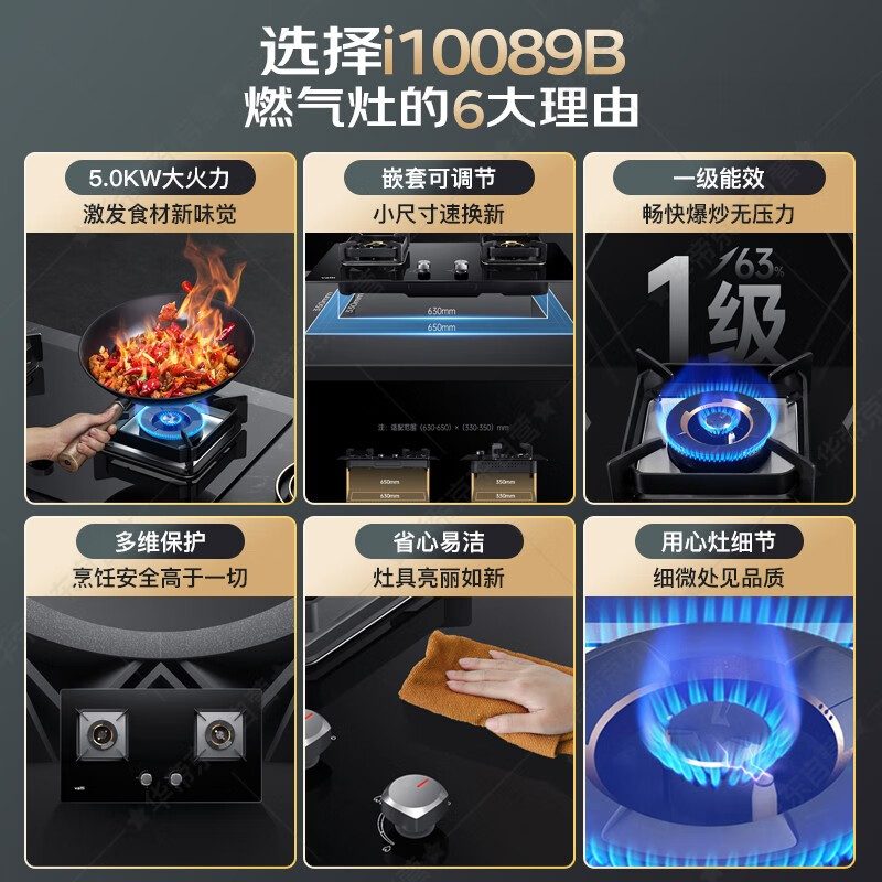 华帝(VATTI)燃气灶 煤气灶 嵌入式台式双灶具灶台 华帝官方一级能效 可调节开孔尺寸 5.0kW大火灶-89B-液化气价格:1599.00元!