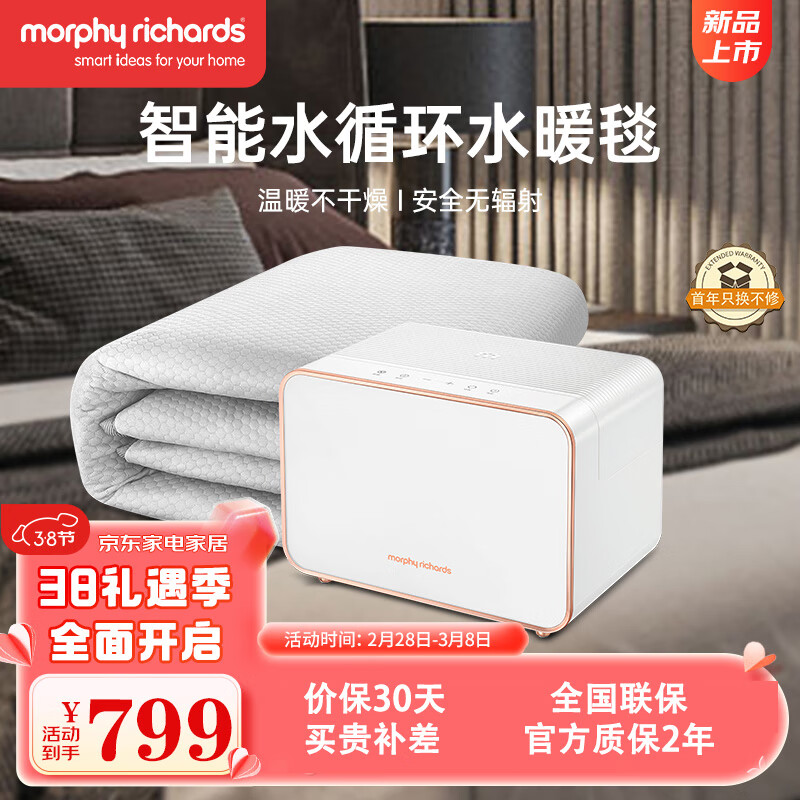 摩飞电器(Morphyrichards)水暖毯水暖电热毯家用柔音恒温除湿除螨水暖炕水电褥子水暖水循环水暖床垫暖被机1.8*2.0米 MR2071价格:799.00元!