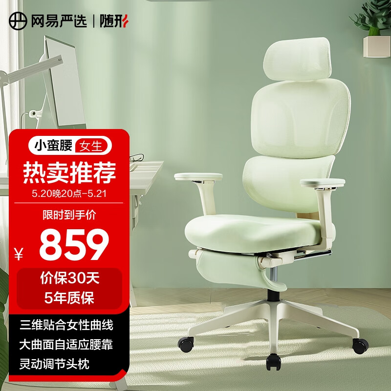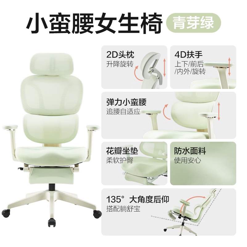 网易严选小蛮腰女生椅青芽绿 人体工学电脑椅办公电竞老板椅会议学习座椅价格:1099.00元!