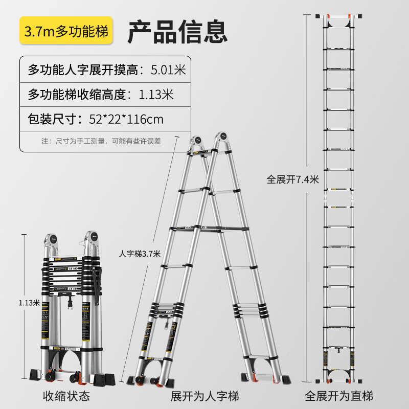 镁多力【防滑款】多功能3.7=直梯7.4米配置参数: