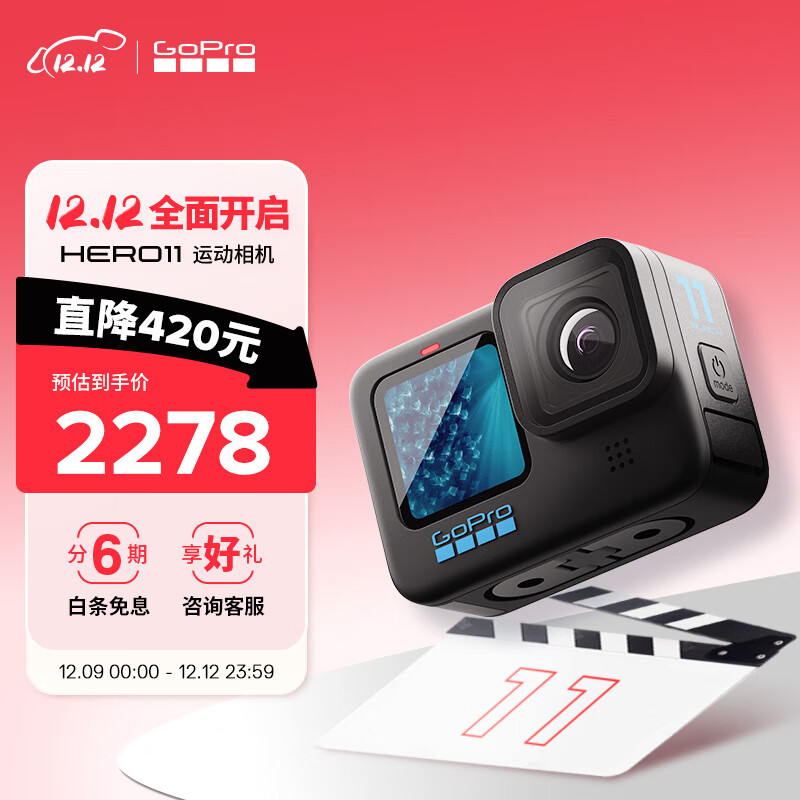 GoPro HERO11 Black 运动相机 户外摩托骑行 潜水防水防抖相机 Vlog数码运动摄像机 滑雪照相机价格:2278.00元!