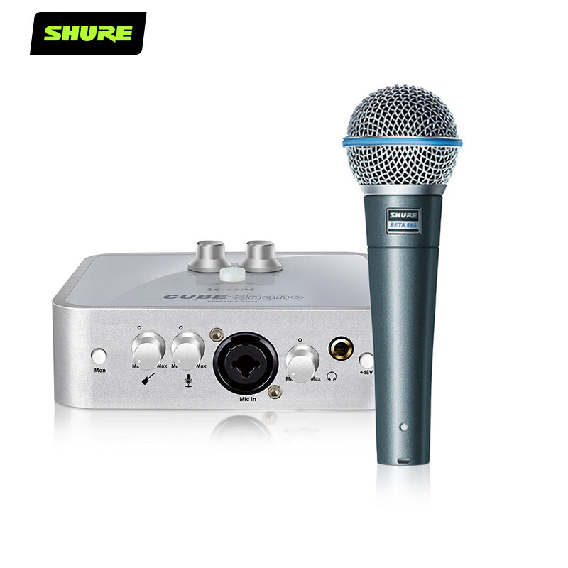 SHURE BETA58A 有线动圈麦舞台演出话筒录音直播K歌设备声卡套装 BETA58A+艾肯2nano声卡套装价格:2199.00元!