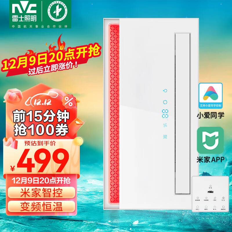 雷士(NVC)米家智能变频浴霸暖风照明排气一体机浴室电暖器卫生间集成吊顶价格:999.00元!