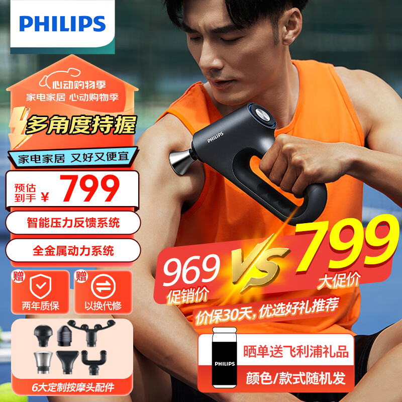 飞利浦(PHILIPS)筋膜枪 深层腰腿颈肩按摩枪 加强推力运动健康健身专业级肌肉深层放松颈肌膜枪 送男女友礼品3202G价格:949.00元!