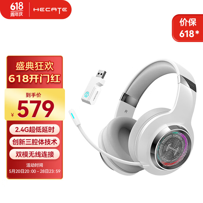 漫步者(EDIFIER)HECATE G6pro 2.4G蓝牙无线7.1游戏耳机头戴式 双模电脑电竞吃鸡耳机耳麦 礼盒包装送礼 银翼白价格:699.00元!
