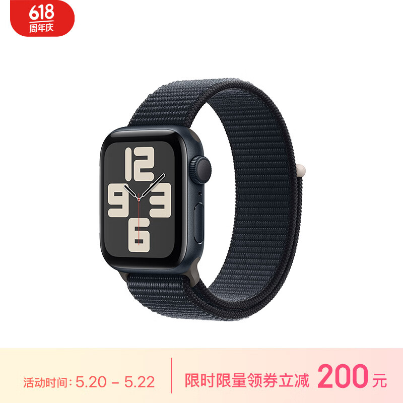 Apple/苹果 Watch SE 2023款智能手表GPS款40毫米午夜色铝金属表壳午夜色回环式运动型表带 MRE03CH/A价格:1999.00元!