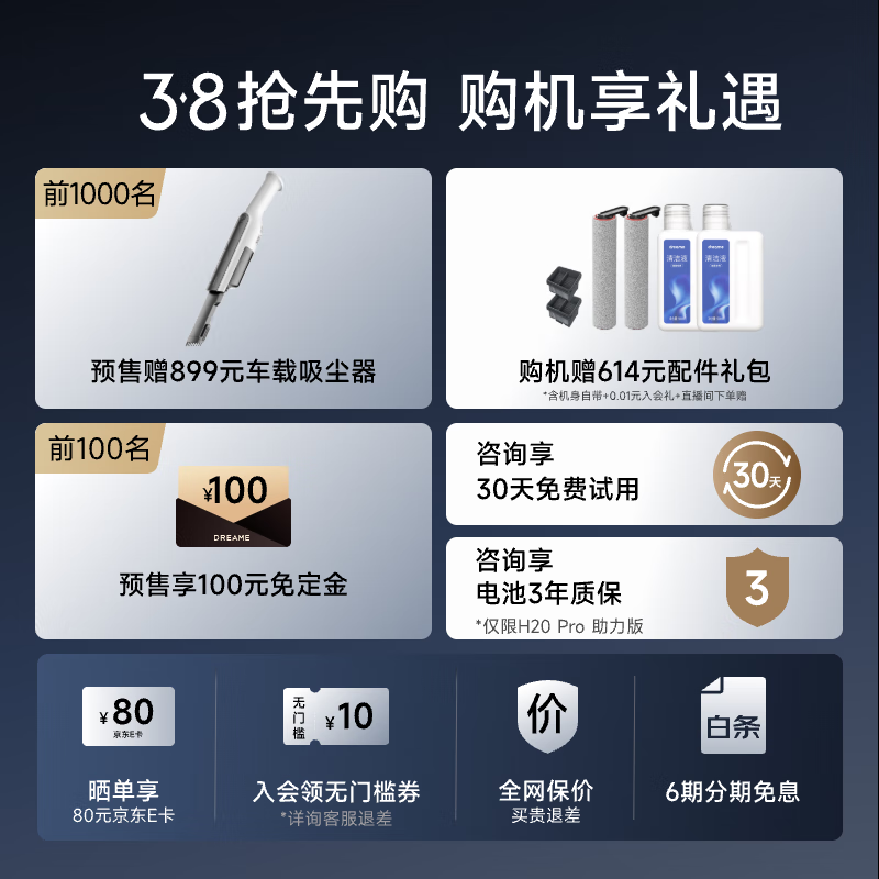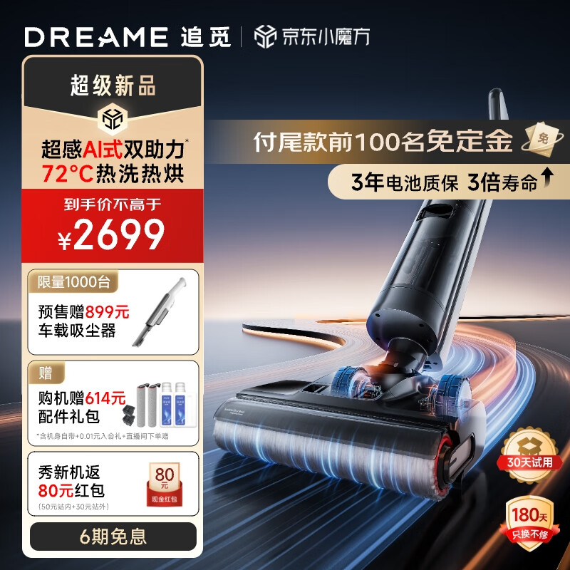 追觅H20 PRO助力版 无线智能高温热水洗地机吸拖扫一体热风速干家用大吸力吸尘器价格:2699.00元!