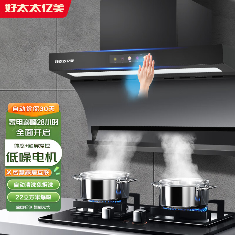 好太太亿美油烟机家用顶侧双吸抽油烟机厨房吸油烟机 短款自动清洗22立方大吸力CXW-298-839B7D6价格:798.00元!