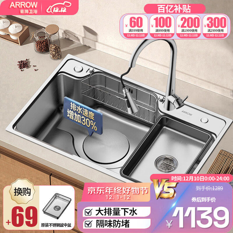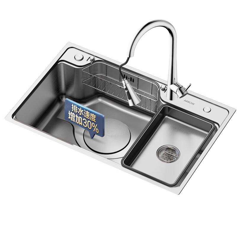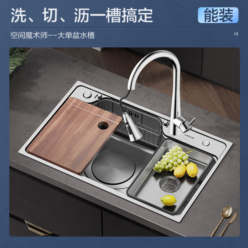 箭牌(ARROW)大单槽厨房收纳不锈钢水槽家用多功能AE5575417G21-SS+AE4540-P价格:1239.00元!