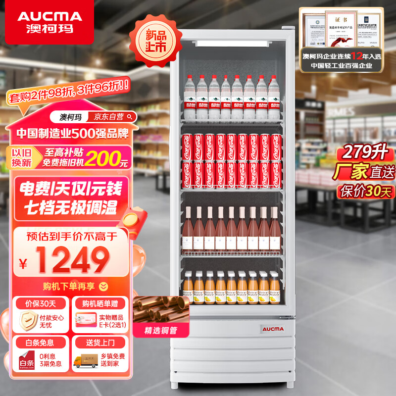 澳柯玛(AUCMA)279升立式单门商用展示柜 超市冷藏柜饮料啤酒保鲜柜 冷柜冰箱茶叶陈列柜 精选铜管 SC-279SNEB价格:1249.00元!