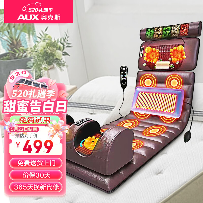 奥克斯(AUX)按摩器按摩垫AJA-12D-809 颈椎腰部背部 家用全身揉捏按摩仪坐垫床垫 520 情人节 礼物 女 生日 男价格:529.00元!