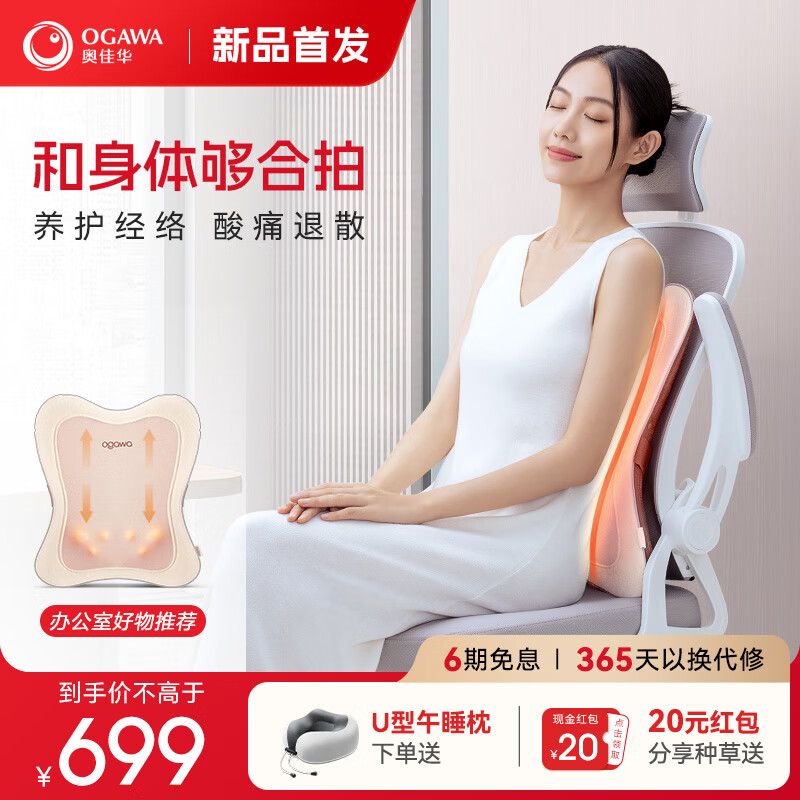 奥佳华(OGAWA)按摩枕背部腰部按摩仪斜方肌2023新品热敷按摩靠枕家用按摩器送男女朋友生日礼物OG2101小腰姬S+ 浅云灰价格:899.00元!