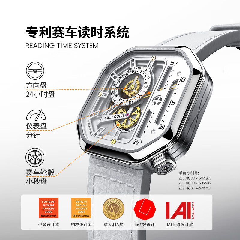 爱勒 AGELOCER原创赛车表女士手表机械手表女款镂空时尚大表盘送女友生日礼物价格:2380.00元!