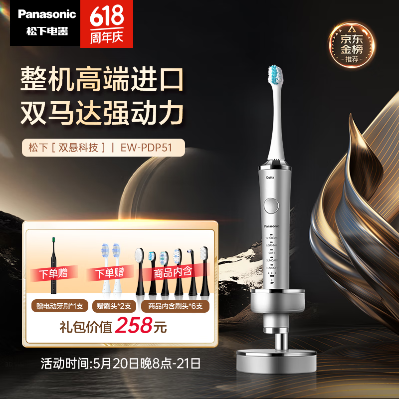 松下(Panasonic)电动牙刷牙医推荐高端整机进口 科技双马达 智能感应 情人节520礼物送男友送女友PDP51银色价格:1396.85元!
