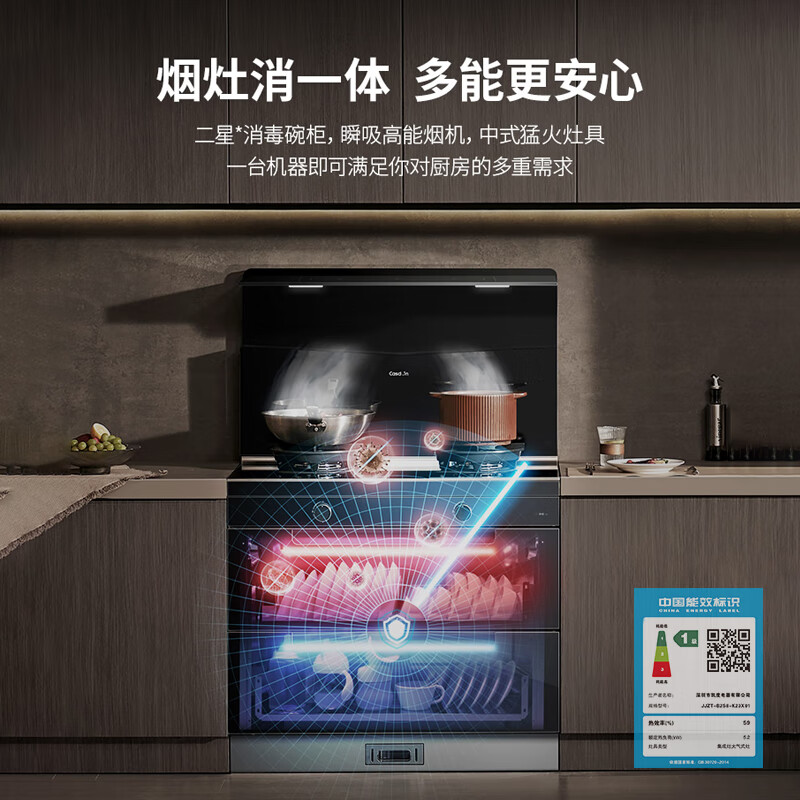 凯度(CASDON)集成灶消毒柜型集成灶一体式集成燃气灶侧吸式抽油烟机一体机 5.2kw火力120L双抽 X01天然气价格:6499.00元!