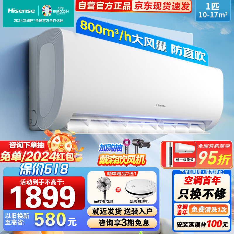海信(Hisense)大1匹 速冷热 新一级能效 大风量速冷暖 APP智能变频防直吹壁挂式卧室空调挂机 KFR-26GW/E370-X1价格:1899.00元!