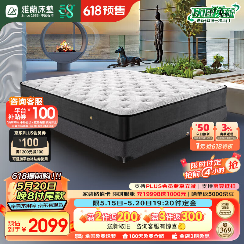 雅兰50周年经典纪念款 整网弹簧偏硬乳胶床垫 蘭朋友舒脊版 1.8*2米价格:2699.00元!