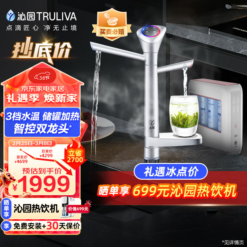沁园(TRULIVA)【加热净水器】厨下式高端家用净水器RO反渗透5级精滤3档水温 厨下式净热一体纯水机KRT8800H价格:1999.00元!