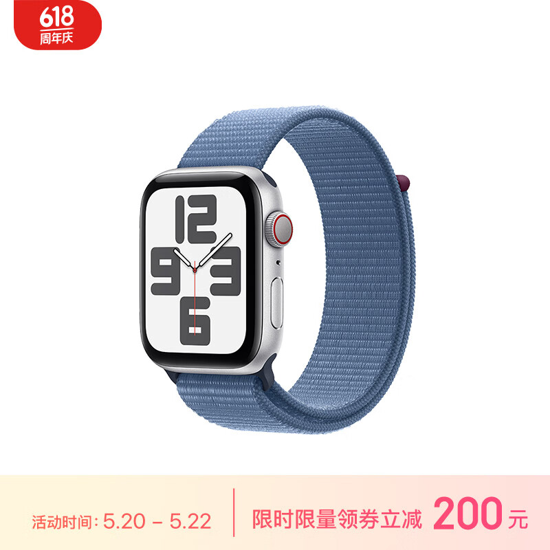 Apple/苹果 Watch SE 2023款智能手表GPS+蜂窝款44毫米银色铝金属表壳凛蓝色回环式运动型表带MRGG3CH/A价格:2599.00元!