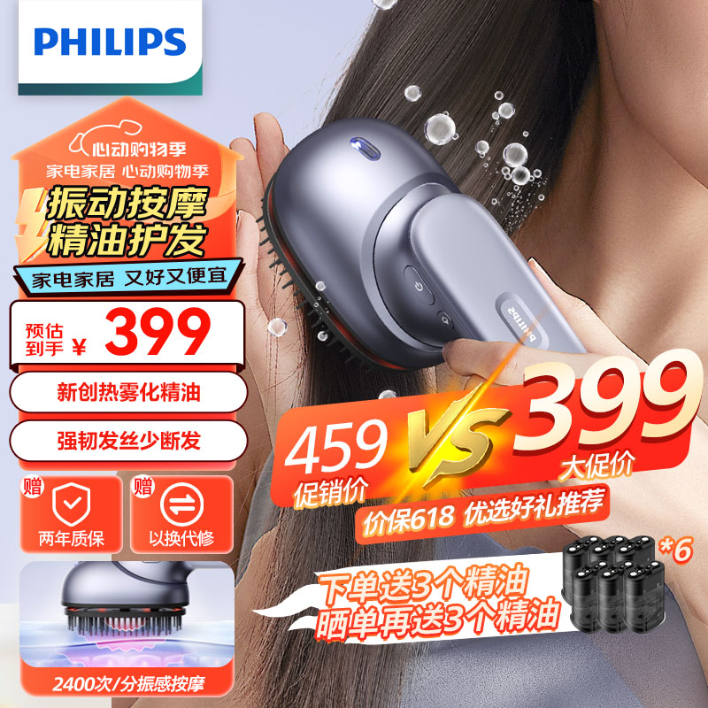 飞利浦(PHILIPS)头皮智能按摩梳 滋养养发育发精油护理柔顺头部按摩器无线便携送男女友520情人节礼品推荐5301H价格:596.00元!