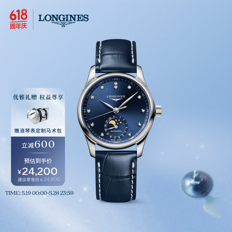 浪琴(LONGINES)瑞士手表 名匠系列 月相机械女表L24094970价格:24200.00元!